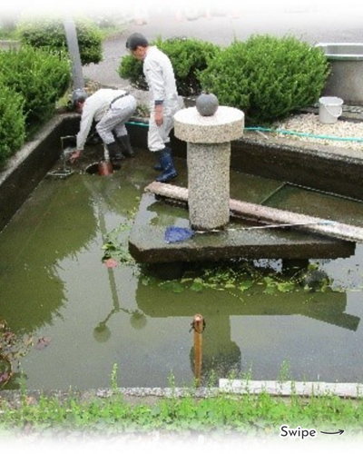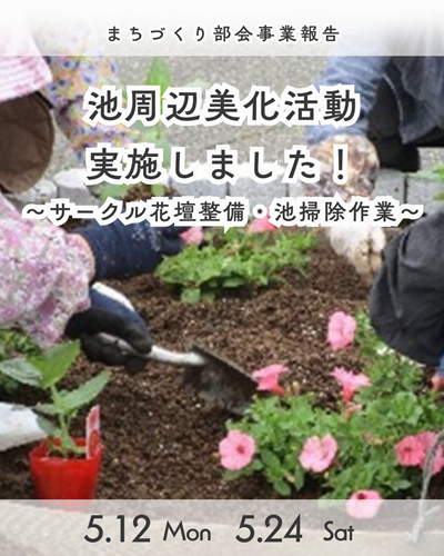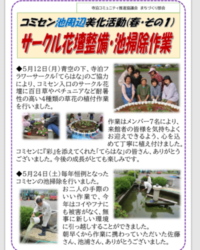 | コミセン中庭・池周辺美化活動(2024.05.15、06.13、06.15) |